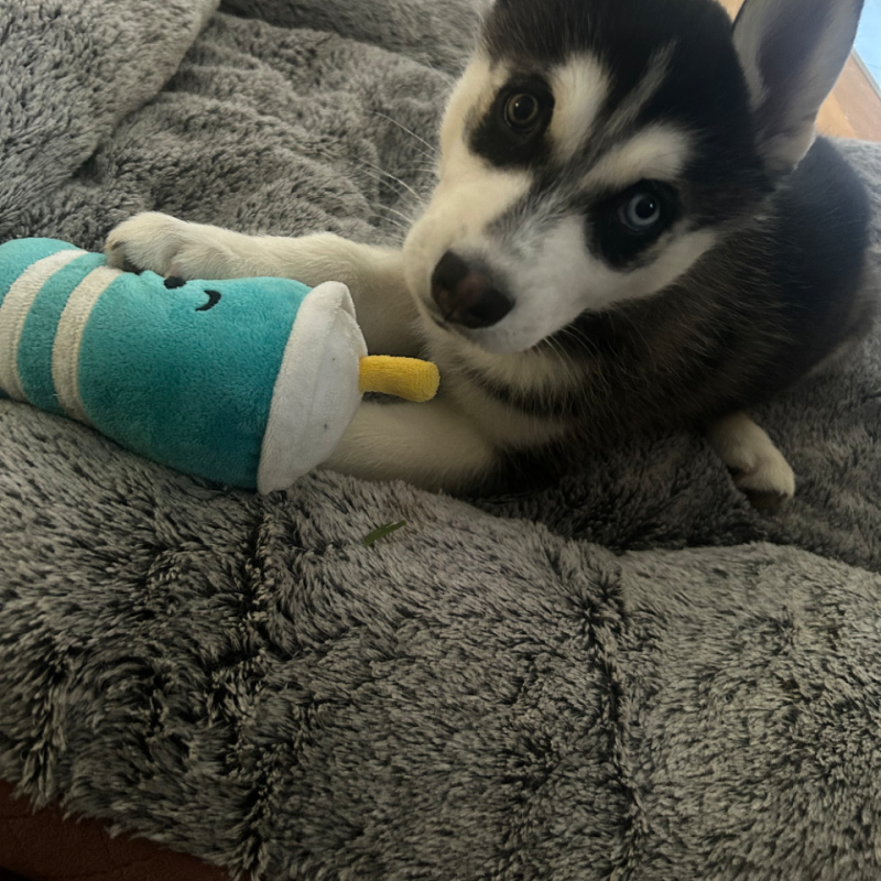 Hi, I’m Bowie, a male Siberian Husky puppy, about 2 months old. My energy is moderate—happy to play, explore, or cuddle when you’re resting. I crave daily opportunities to learn about life and grow with you through simple training, new experiences, and plenty of play. I’m dog-social and seem to get along with other pets, with no known issues there. Best with Children Aged: No known child related issues. I’d thrive in a home where someone works average hours, so I’m not left alone too long and I can bond with you. I’m eager to learn, loyal, and excited for adventures, walks, and games that challenge my brain. If you’re ready to mentor a curious pup who will become a loving, energetic companion, I’d love to meet you.
