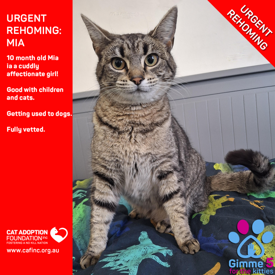 Donate to Mia - Private Rehoming No Charge! at Cat Adoption Foundation Incorporated via Shout