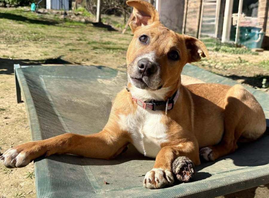 Sophie is 6 month old female mixed breed pup that is one of the Hoarder Pack we took into care. Our guess is staffy x terrier in her gene's. Sophie is currently around 16kg. This girl is a playful, active and at times demanding pup that adores people.