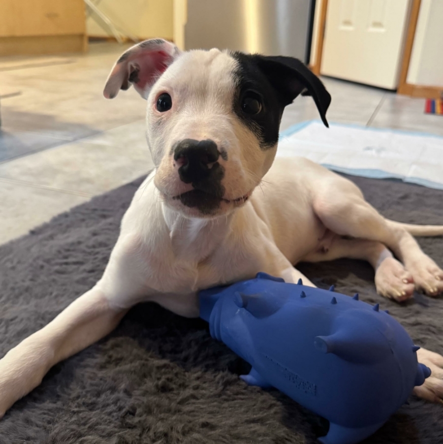 Pirate is a very playful pup and has gotten along well with all other dogs. For a long term doggy companion, a larger breed would be better suited to him as he loves a good wrestle.