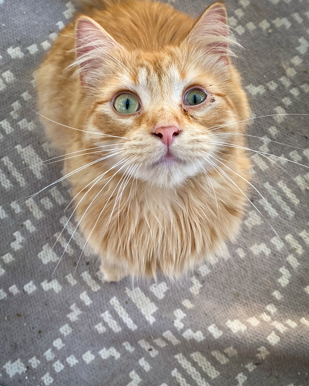 Chutney is an absolute sweetheart. He loves people, loves cuddles and hanging with you is his goal in life. He gets on really well with other cats. A very easy going, loveable guy.