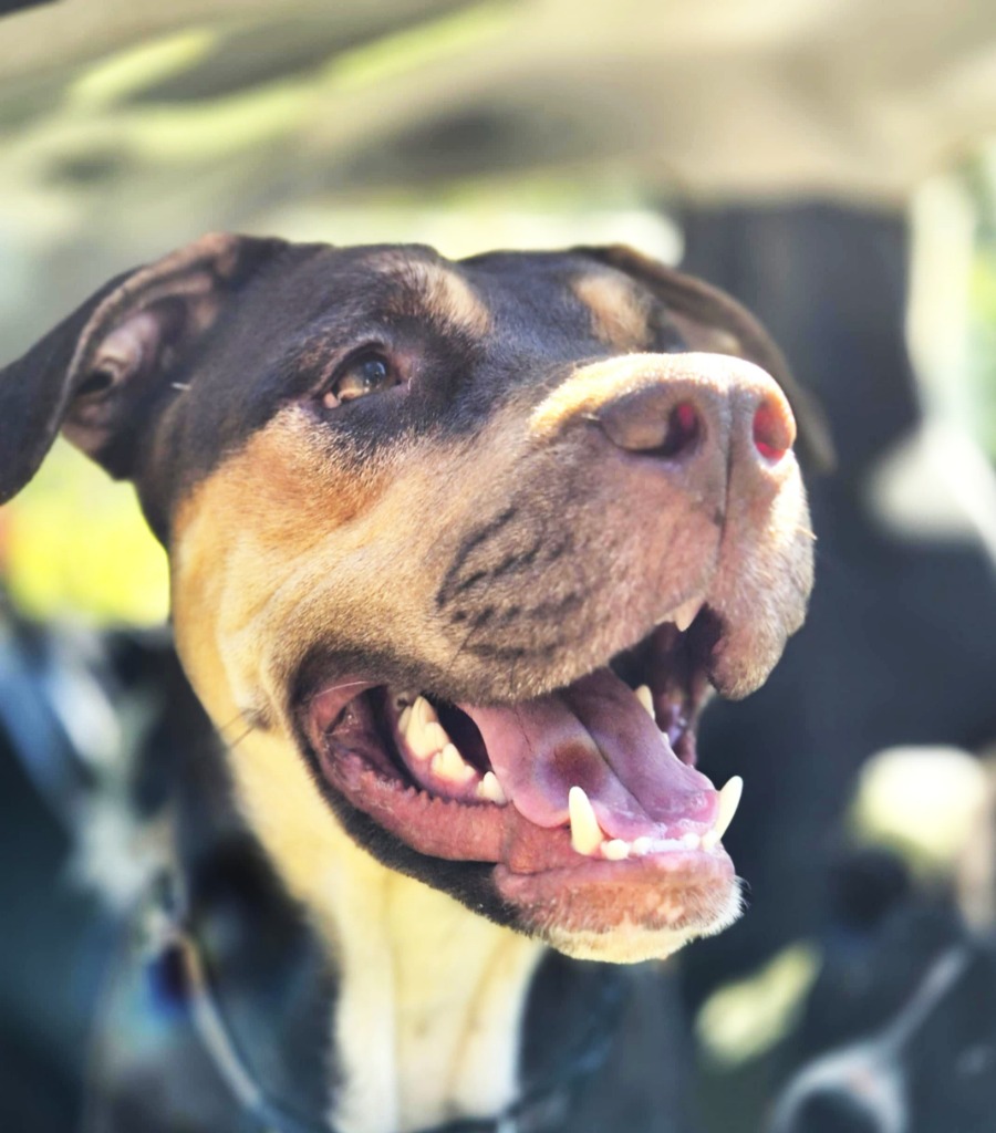 She’ll trot back to you with a big smile on her face, but never strays that far from her human. She travels beautifully in the car and is learning to walk well on a lead (we suspect she has never been on one before!). Milo has a gentle nature but isn’t shy about showing her fun side and is still learning that jumping is not the way to go to get a pat.