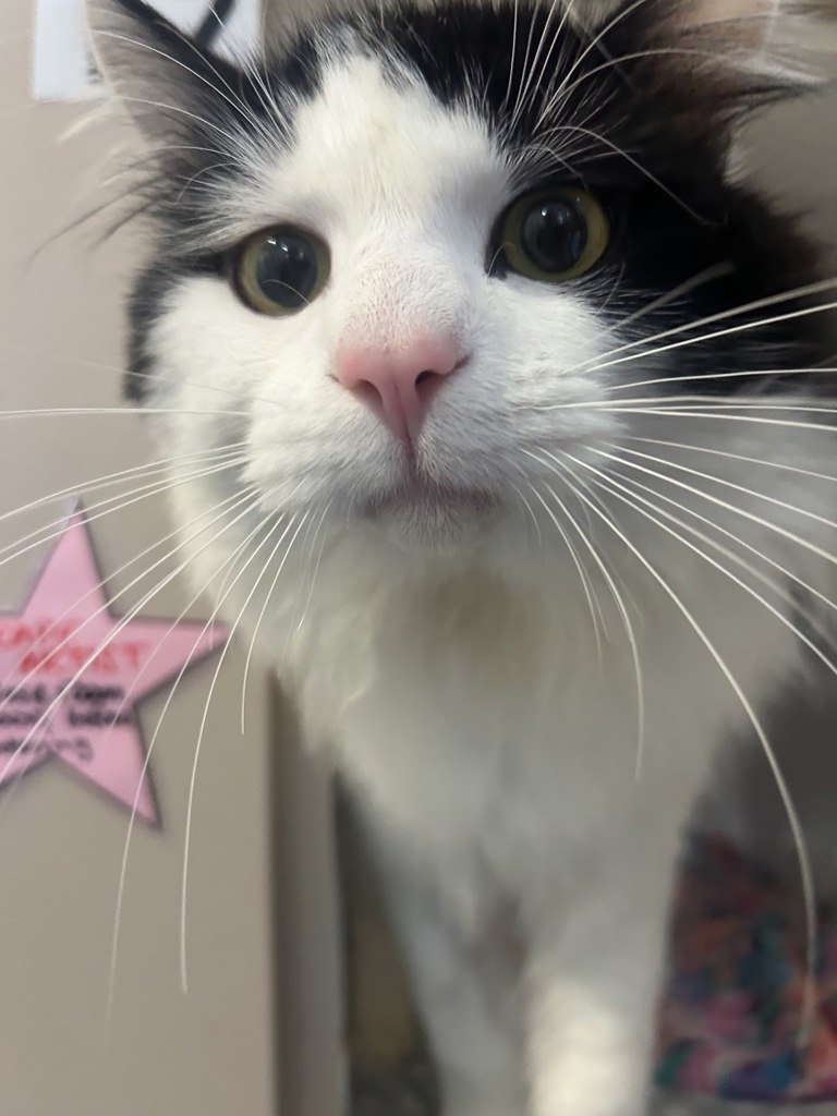 Do you have a soft spot for dramatic floof and big personalities? Then Orca may just be your soulmate in cat form. With his tuxedo-colored fluff and striking presence, he's not just a cat - he's an experience.