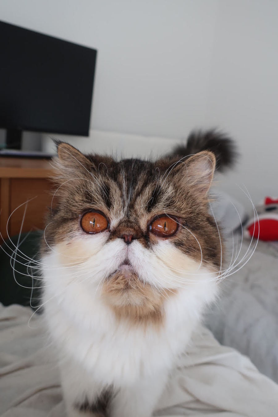 She’s a calm, amazing companion with other cats and dogs, though she can be easily startled, so a home with little children isn’t ideal. Mushie loves playing with her kittens and her sister Toastie, but she also enjoys her own quiet time which includes bathing herself and taking long, peaceful naps. She has a playful streak too, and chasing toys around the room is one of her favourite pastimes.