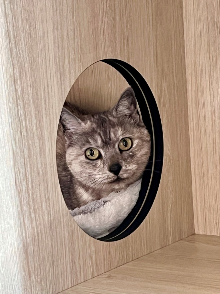 Meet Polly, an elegant 11-year-old domestic shorthair with a gorgeous grey tabby coat and a gentle spirit. Her reserved and quiet demeanor adds an air of grace to any home she graces. Polly is looking for a special new family who can appreciate the subtle beauty of her personality and provide her with the loving home she deserves.