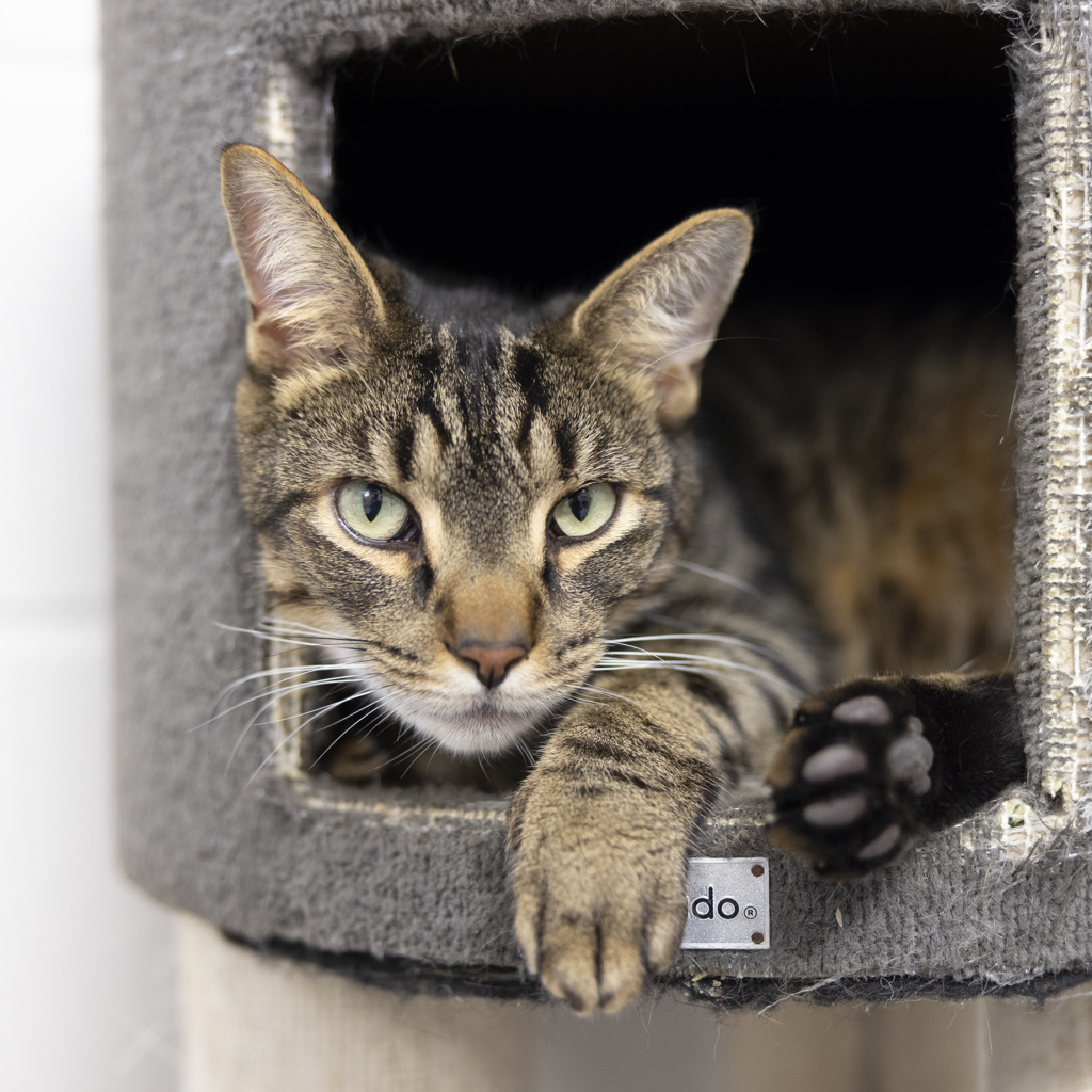 Nobby is pure love in a tabby suit. He's the kind of cat who just wants to be close to you - curling up nearby, nuzzling in for chin scritches, and giving you those sweet "thank you" eyes that will absolutely melt your heart.