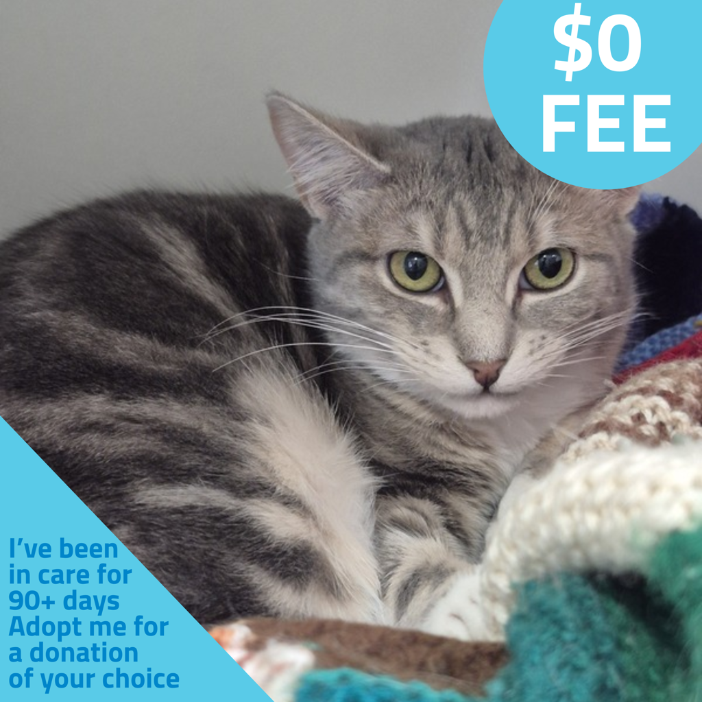 I've been waiting for my forever home for over 92 days now...That's a long time for a good feline friend like me, but I'm still hopeful! Because of this I have no set adoption fee - you can take me home with a donation of your choice.
