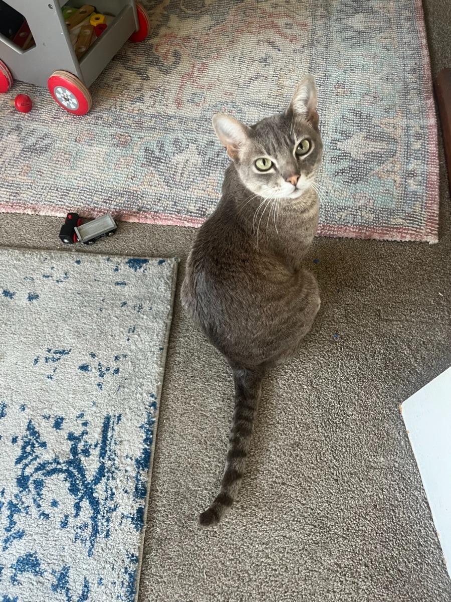 Most days, you’ll find Basil following a relaxed routine—sleeping soundly through the night, pottering about the house during the day, and sharing dinnertime with you. His playful bursts usually come in the early evening, but he’s always ready to settle back in for more cuddles.
