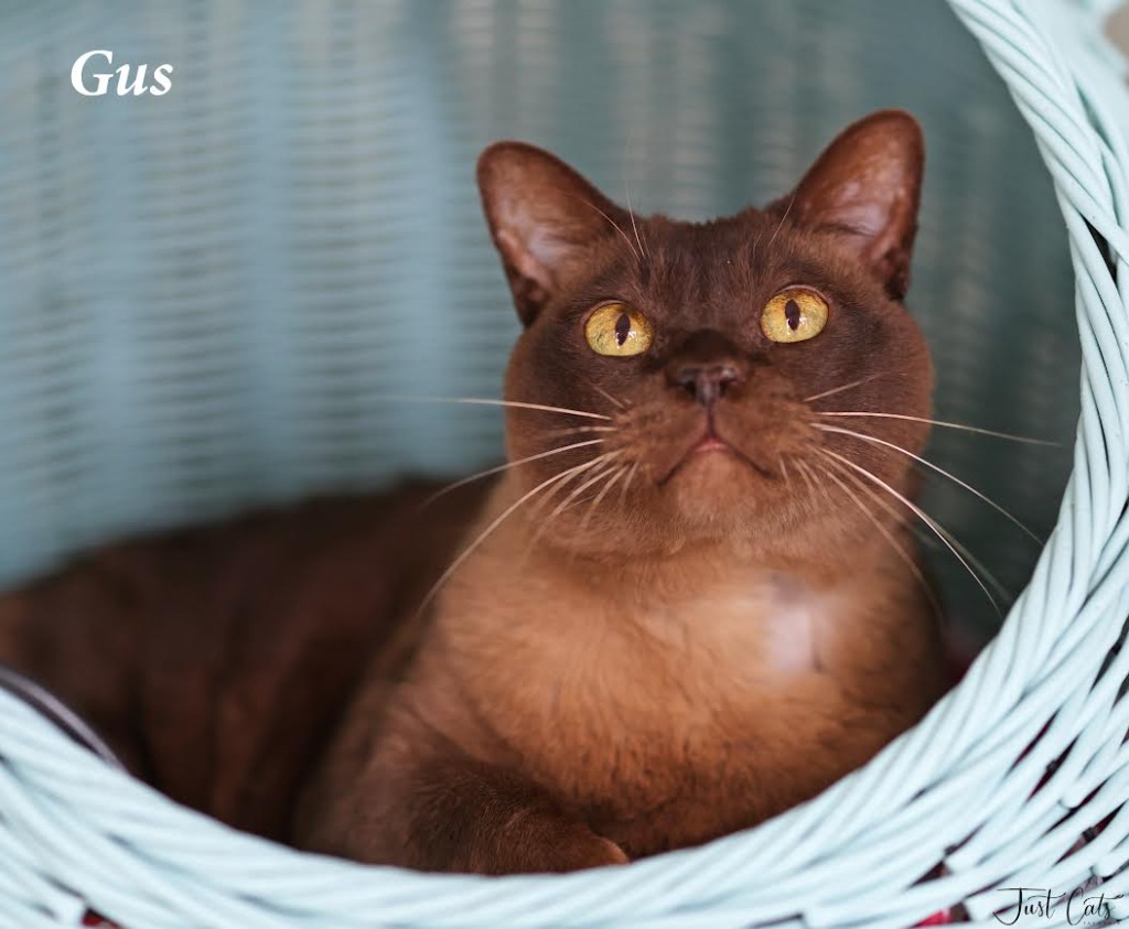 Gus is a handsome, chatty boy who absolutely adores people and attention. He came to Just Cats as a surrender due to his family moving overseas. After many years in a loving home, where he was spoiled with cuddles and affection, and he’s hoping to find a new family who will do the same. Like a true Burmese, Gus is very social and loves to “talk” to his humans. He’ll happily tell you when it’s time for bed, time for food, or simply time for more cuddles. He has plenty of quirky habits too, such as drinking water from the shower, curling up for morning cuddles with coffee, and snoozing wherever the nearest human (or sunny spot) can be found. Gus is also known for being a bit of a smoocher, he loves as many cuddles as you’re willing to give. He has lived happily alongside a dog before and would be fine in a home with another relaxed companion, as long as he gets plenty of attention but has not been around other cats so would like to be the only cat please. In his retirement years, Gus enjoys a slower pace of life: naps in the garden, cozy evenings by the heater, and lots of human company. He’s the perfect companion if you’re looking for a friendly, affectionate cat who will make every day brighter.