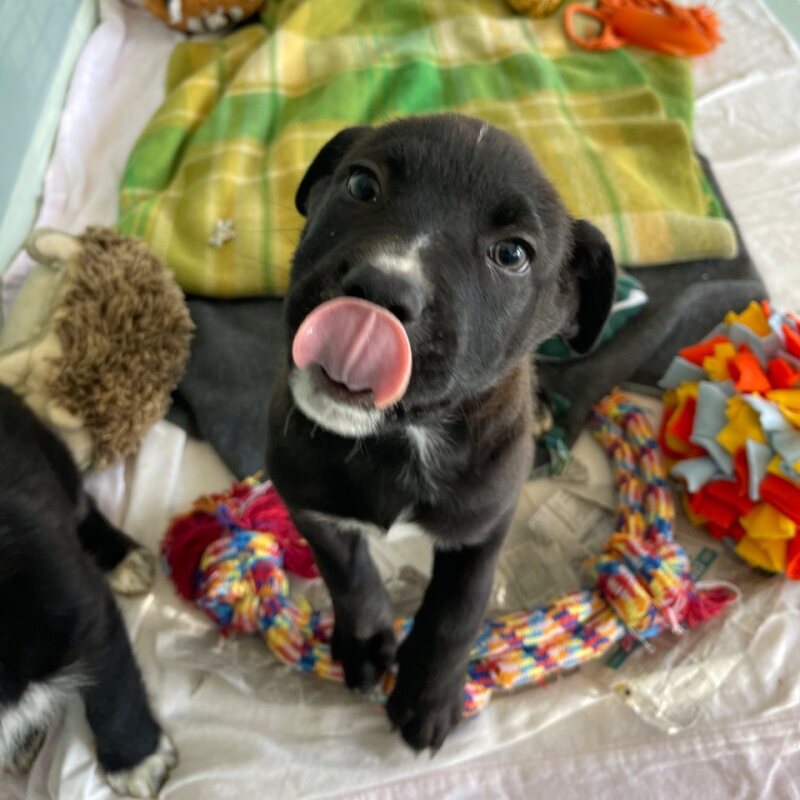 Hi, I’m Pongo, a male Border Collie puppy. Age: 2 months. I’m a lively, eager-to-learn pup who loves to explore and play. I’d thrive with someone working average hours, so we can keep a steady routine with daily training and adventures. My energy level is high, and I’m looking for an active home where I can run, sniff, learn new things, and burn off steam in healthy ways. I’m social with dogs and enjoy their company, and I have no known issues with children. I’m also good with other pets, with no history of problems. I need daily opportunities to learn about life—positive, patient guidance helps me grow. If you’re ready for a loyal, trainable companion who loves games, walks, and learning, I’d be excited to meet you.