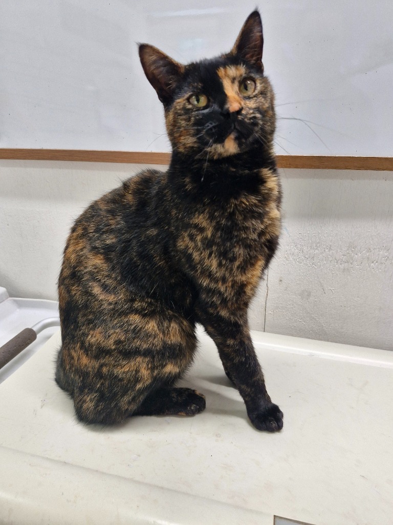 say hello to Milo, a stunning Tortie girl with a heart just as beautiful as her coat. This sweet soul was sadly surrendered when her previous owner had to move into a home that doesn’t allow pets, no fault of her own!