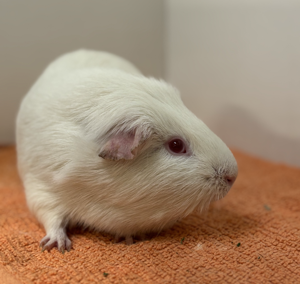 Butter is the sweetest little treat you'll ever meet! This little fluffball lives up to his name with a soft, buttery coat and an even softer heart. Butter comes from a home with children, so he's used to gentle hands and friendly voices. He prefers to be the only piggy in the pantry as he doesn't get along with other guinea pigs, but he has plenty of love (and squeaks!) to give all on his own. If you're looking for a solo snuggle buddy as sweet as dessert, Butter is your perfect match!