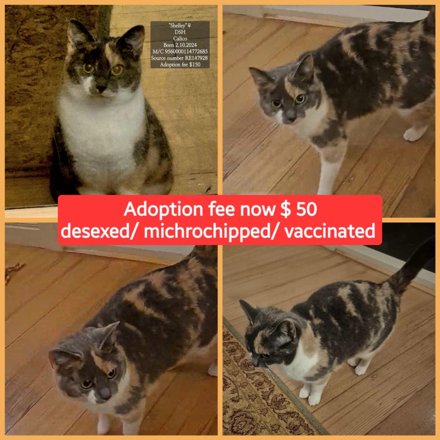 Shelley was only only a baby herself but has raised her kittens now, and it's time for this pretty little Calico to have her own family to care for her.