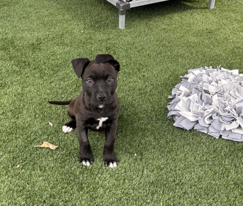 Hi, I’m Fidget, a female Staffordshire Bull Terrier puppy. I’m all energy, curiosity, and affection. I love people, exploring, and a good cuddle after a romp. I’m eager to learn—crate training, basic manners, and gentle play come naturally with patient, positive training. I’m a little shy so be gentle with me. I thrive on daily play, walks, and brain-stimulating toys. I’m looking for a forever home that will give me structure, love, and time to grow into a confident, loyal companion. If you’re ready for puppy kisses, loyal companionship, and a joyful new friend, I might be the one for you. Call in to set up a meet-and-greet and see if we’re a match.