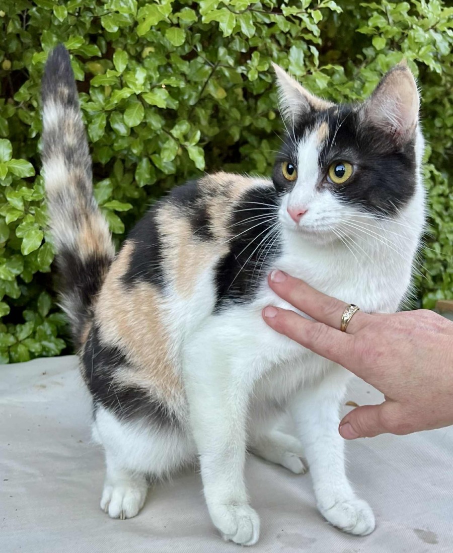 Halle-Berry is a stunning little calico with the sweetest nature. She has been happily socializing with other cats and adores pats and plenty of attention.