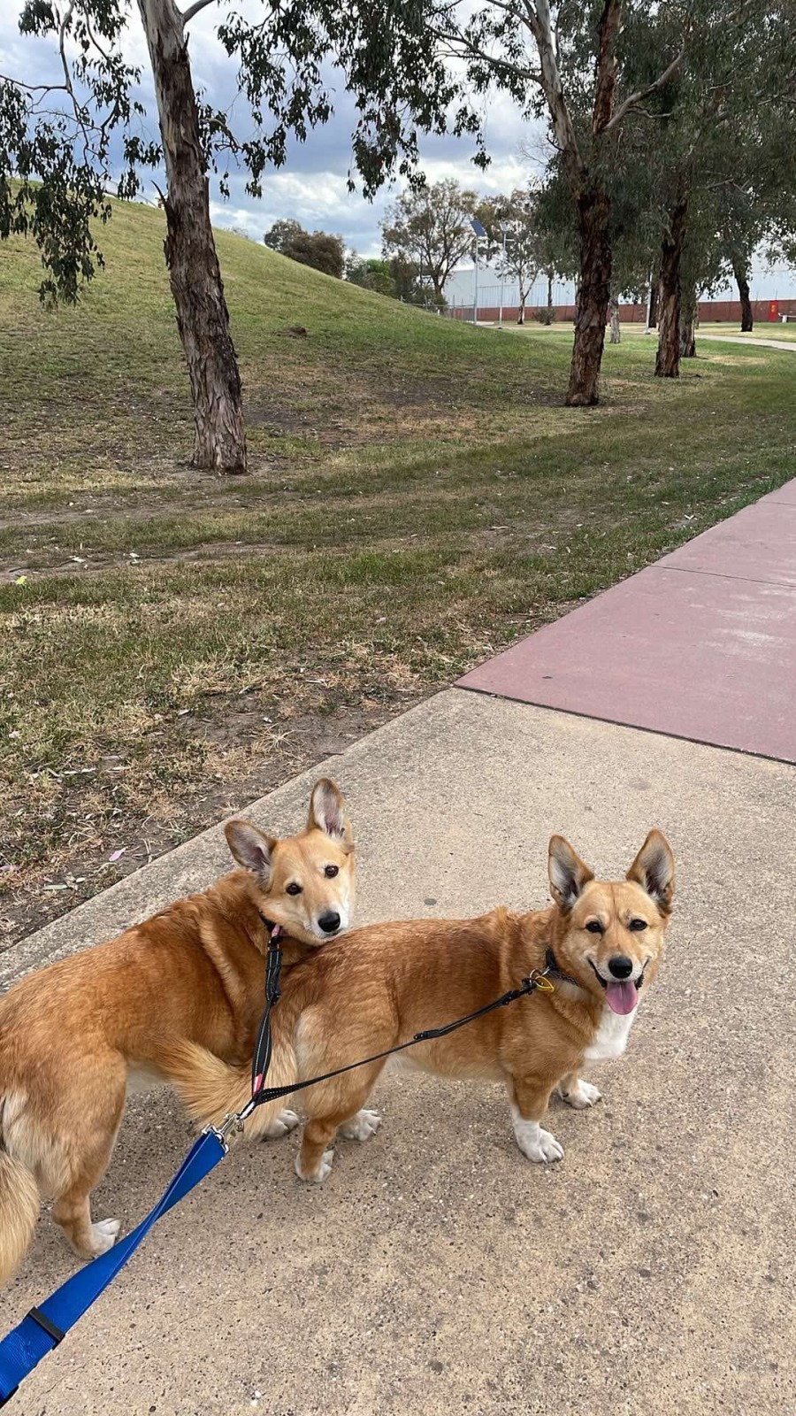 • Lovely walkers — they stroll side by side on a split lead, turning heads and spreading smiles everywhere they go 💚