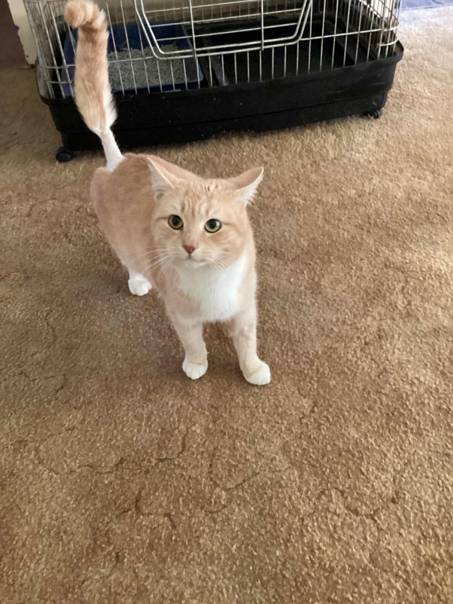 Flopsy is friendly and sweet. She is good with other cats and people in general. She was found after being hit by a car and she needed surgery to put a plate and pin in her leg. She walks with a very slight limb and the vet has deemed her ready for adoption.