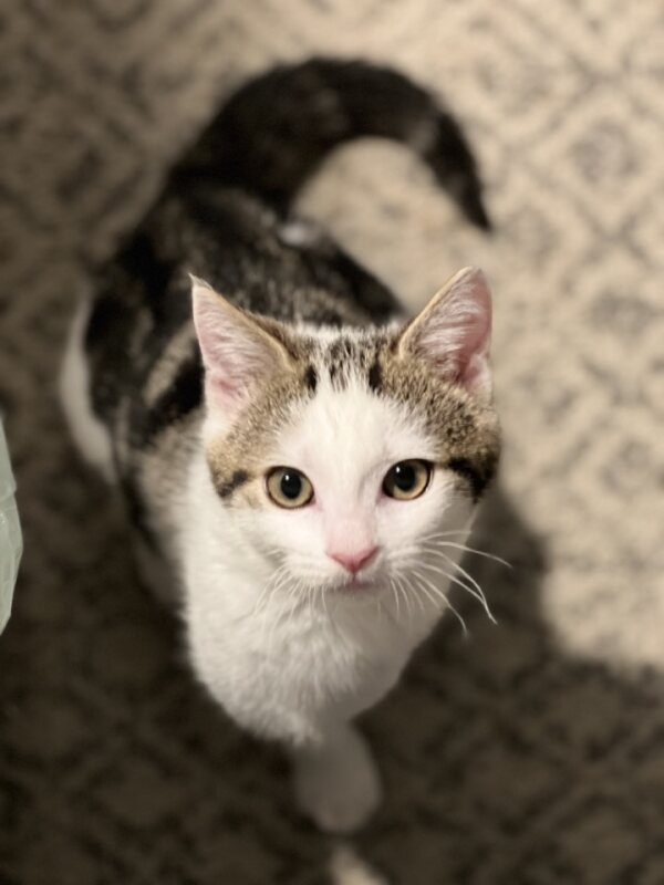 Hi, I’m Isla. I’m a female Domestic Short Hair kitten with a calm, curious personality. Age: 2 months. My energy level is average, so I’m happy with a mix of gentle play and cozy cuddles. Best with Children: No known child related issues. I’m friendly and patient, and I’m looking for a home that will give me time to grow into my confident, affectionate self. I love exploring, swatting at soft toys, sunny spots to nap in, and curling up in a warm lap after a little adventure. I’m litter-trained and curious about everything around me. If you’re looking for a loving, playful companion to brighten your days, I’d love to meet you. I’m ready to purr, pounce on new adventures, and become your loyal friend.