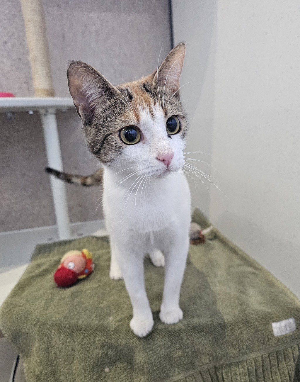 Just like her name, Spring brings a little sunshine wherever she goes. This lovely lady is a snack enthusiast with a delightful independent streak. She's the kind of cat who knows what she wants, whether that's a gentle pat session or some quiet time to herself.