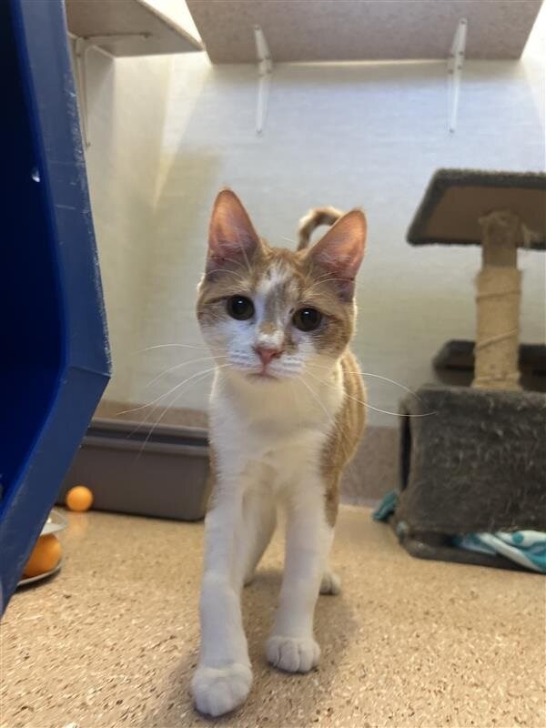 Hi, I'm Amy. I’m a female Domestic Short Hair, Age: 5 Months. I’m a high-energy little explorer who loves to zoom, chase feather toys, and test every curious nook. I’m bold, social, and ready for action, then I’m all about cuddles when I’ve burned off some energy. I do well in a lively home with lots of enrichment—think daily play sessions, climbing spots, and puzzle feeders to keep my mind busy. I’m great with other playful kittens and I have no known child-related issues, so I’m hoping for a home that can match my energy and give me safe adventures. I’m learning to settle into a warm lap after a big playtime, and I’ll reward you with purrs and head-butts when I’m ready for love. If you want a curious, affectionate companion who grows with you and brings constant motion and joy, I’m your girl. Ready to meet me? I can’t wait to find a forever home that loves play as much as I do.