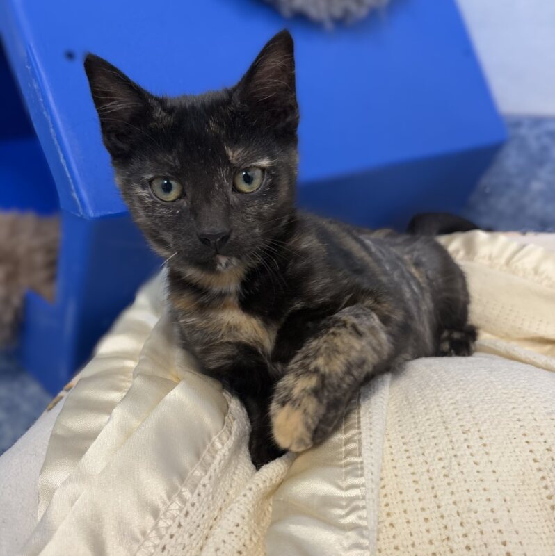 Hi, I’m Spring. I’m a female Domestic Short Hair kitten, currently about 3 months old. I am high-energy and curious on four paws—I love zoomies, batting at dangling strings, and investigating every corner of my home. I learn fast, adore interactive play, and I’ll happily nap in a sunbeam after a big adventure. I do best in an active home with plenty of enrichment: puzzle feeders, sturdy scratching posts, and safe, supervised play with humans or other friendly pets. Best with Children Aged: No known child related issues. I’m affectionate and brave, ready to form a purr-filled bond with my forever family. While I’m small, I have a big personality and I’m excited to grow with you. If you’re looking for a lively, loving little roommate who will bring endless smiles and energy to your days, I’m Spring and I’m ready to meet you.