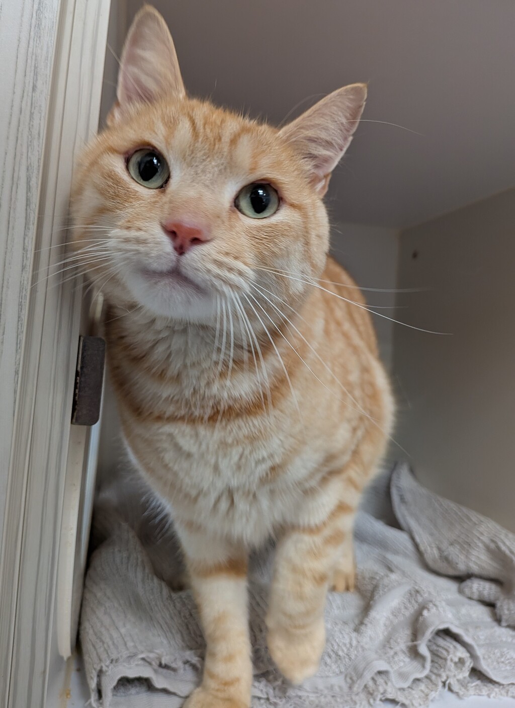 Calling all ginger cat lovers! Paulie is a handsome, large framed boy with an equally large personality. This smoochy and affectionate feline is looking for a forever home where he can share his love and charm. While Paulie may be a little shy at first, once he feels safe and settled, his sweet and cuddly nature shines through. He adores gentle pats, cozy naps, and being close to his humans. Paulie is the kind of companion who will quietly win your heart and become a loyal friend for life. His calm demeanour and loving personality make him a wonderful match for a peaceful household.