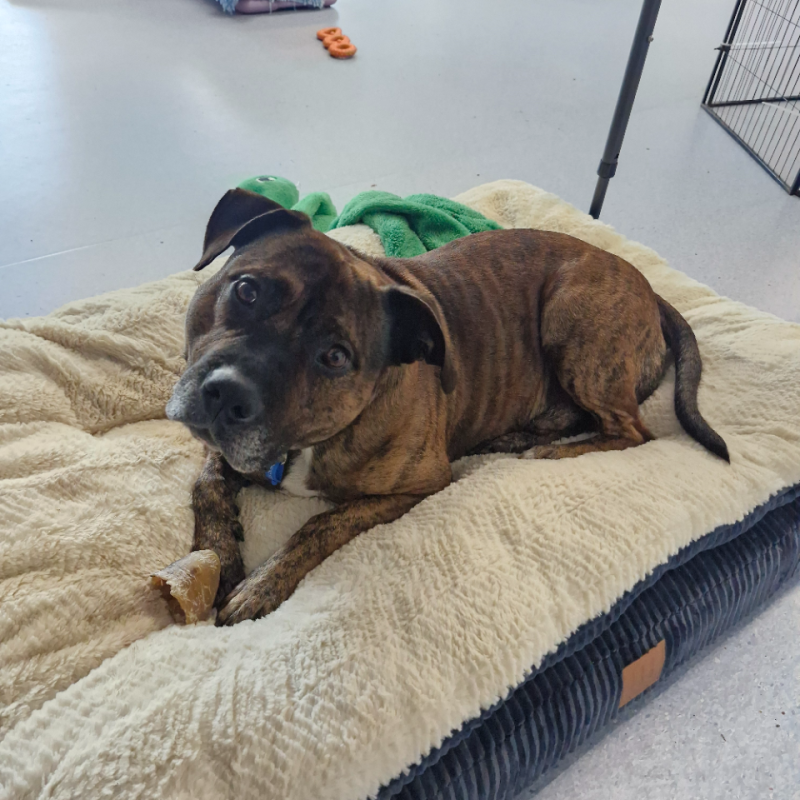 Hello there, my name is Troy, a handsome 7 years and 9 months old American Staffordshire Terrier. I am a calm and composed boy, looking for a peaceful home with someone who works average hours. I am best suited to a household with older children, at least 15+ who can understand when I need some space and time alone. I am a bit selective with my dog pals, so it's better if I'm not taken to off-leash dog parks. I may not be a puppy, but that doesn't mean I don't love learning. I look forward to daily opportunities to learn about life, and I promise to be a quick learner! I have no known history of issues with other pets and I would thrive in a quiet and calm household. I'm a gentle soul in search of my forever home where I can be the loyal and loving companion you've been looking for. If you're looking for a relaxed, loving companion, I am your guy. Let's meet and start our journey together!
