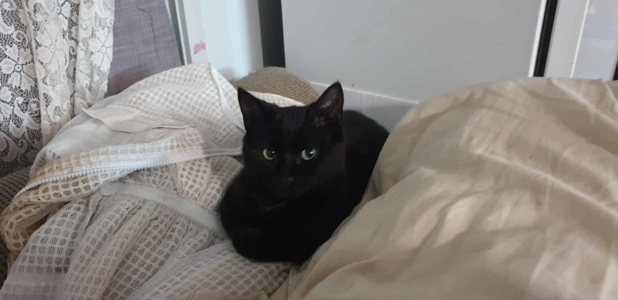 I’m a pro at games – my favourite is “just out of arms reach.” You’ll chase, I’ll dodge… but once you catch me, I’ll crank up my purr motor & give you smoochy kisses. At bedtime, I love climbing under the covers for cuddles & making biscuits with my big “murder mittens.”