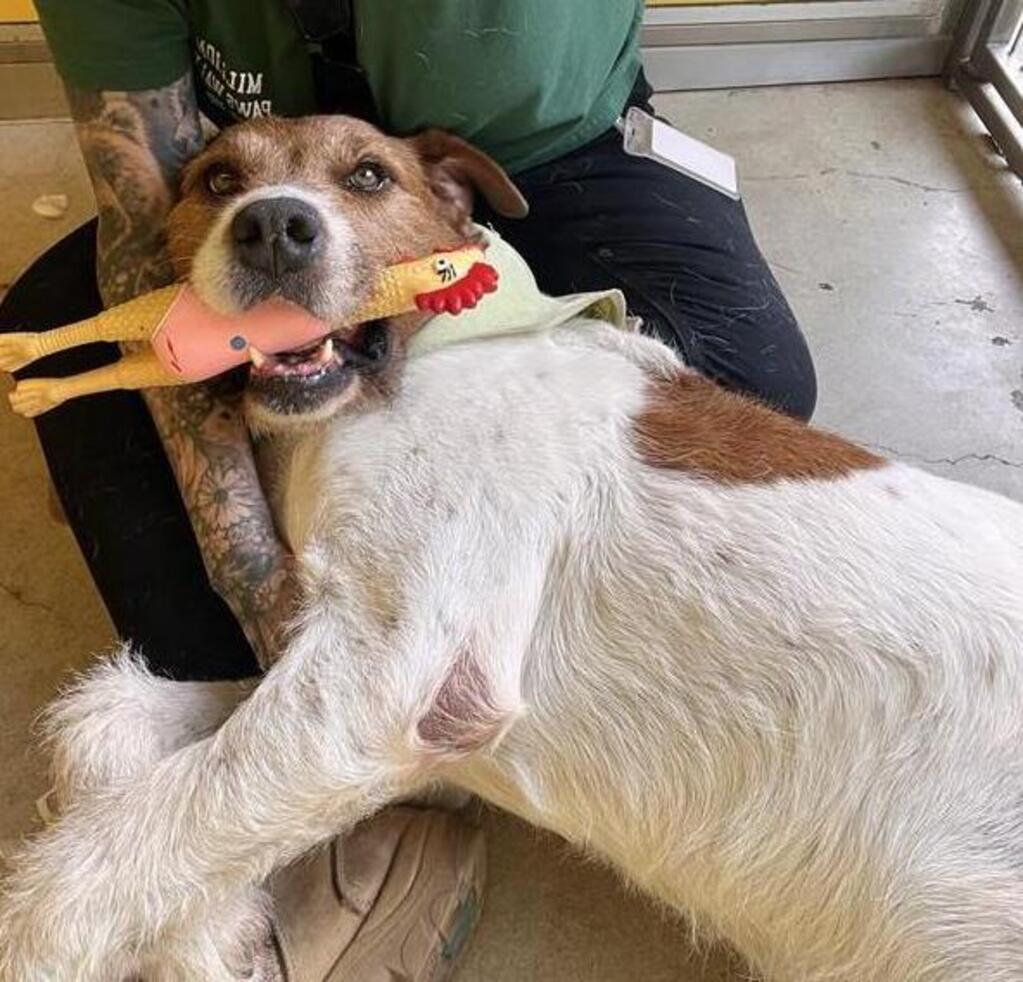 This cheerful pup absolutely adores his toys, especially his favourite chicken 🐔, which he proudly carries around like a prized possession. Whether he's playing, snuggling, or just enjoying your company, Bucky's gentle nature and affectionate personality shine through ✨.