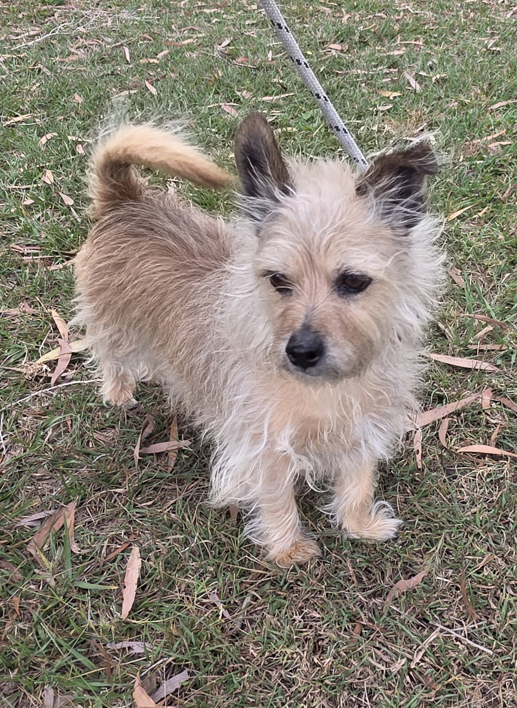 Don't let her age fool you - Poppy is a spirited little lady with a heart full of joy and a tail that never stops wagging! This charming mix of Wirehaired Jack Russell Terrier and Australian Silky Terrier absolutely loves people and is always up for a stroll around the block or a cuddle on your lap.