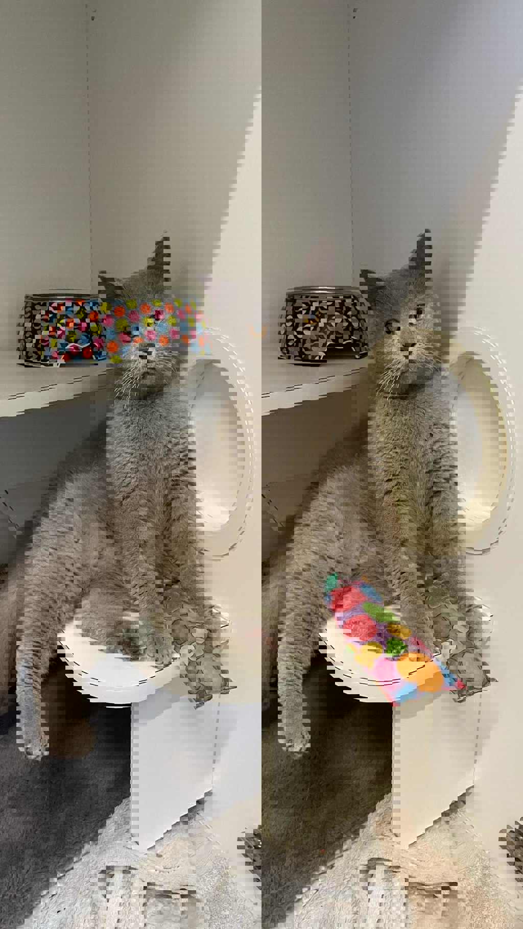 Say hello to Oliver, a handsome 5-year-old British Shorthair with plush grey fur, round golden eyes, and a heart as soft as his coat. While he may come off a bit reserved at first, give him a little time and patience-and you'll be rewarded with sweet head-butts and quiet companionship.