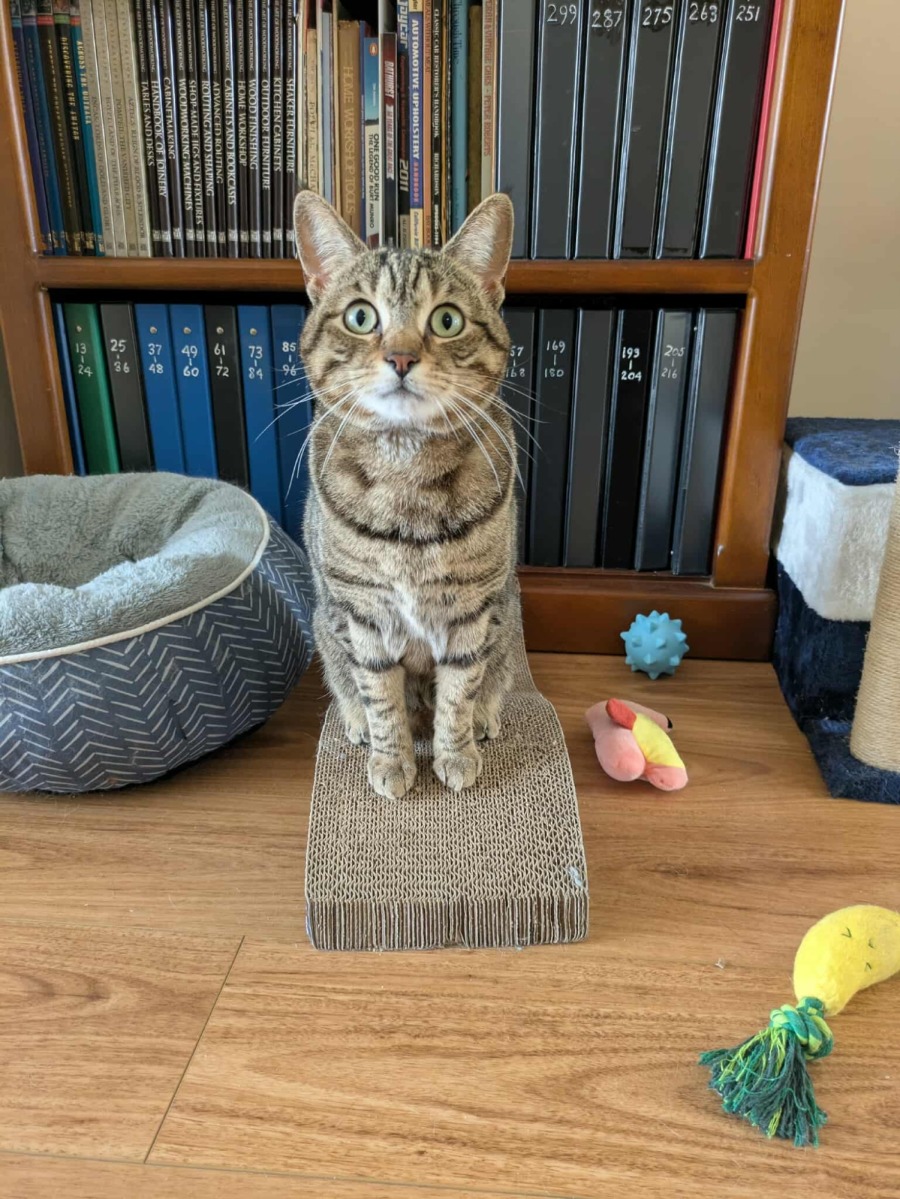 Cleo thrives on engaging activities and will light up your day with her antics, chasing toys or lounging happily on her scratching mat and pole. While she can be a little shy when first meeting new people, she quickly warms up, showing her affection through an abundance of pats. Once she's comfortable, Cleo absolutely adores being brushed, making it a great way to bond.