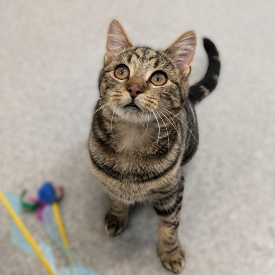 Tony Hawk is a playful, social kitten with a huge personality packed into a little body. He came into care with his brothers, and is now looking for a forever family full of fun and love.