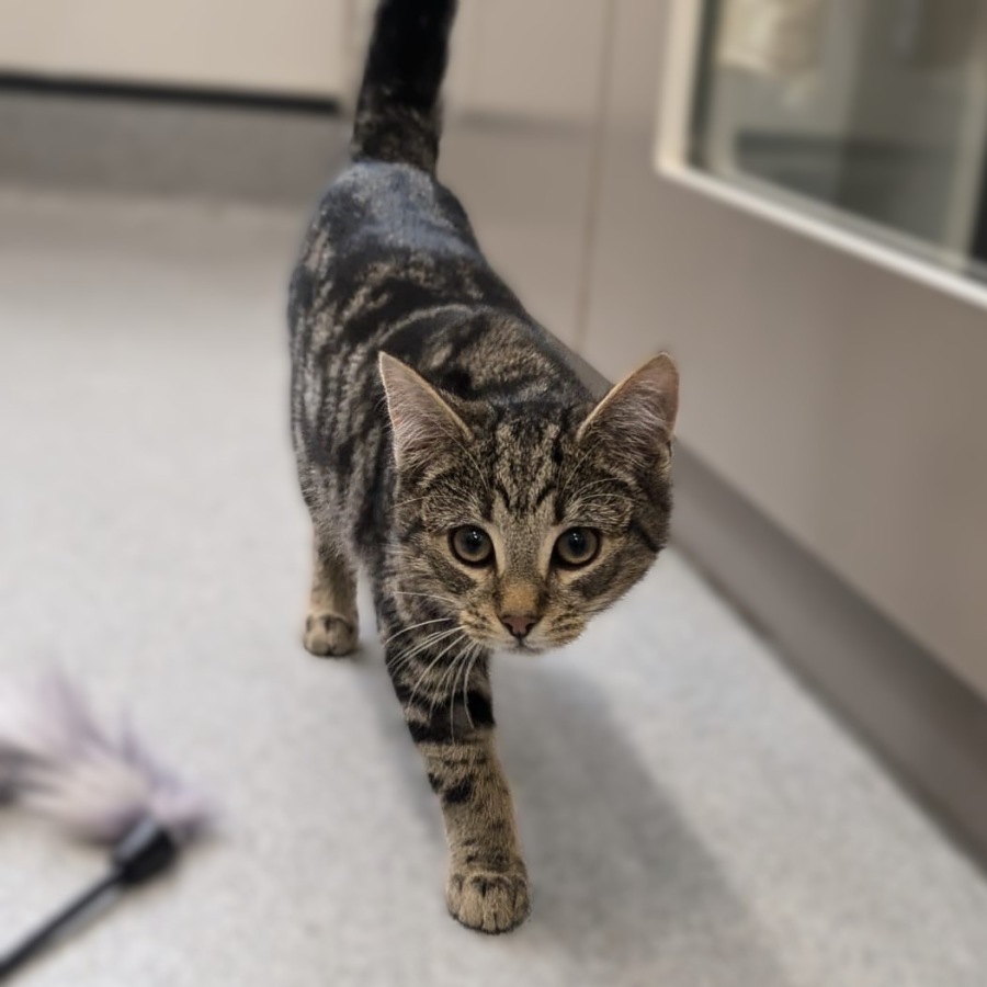 Rockstar is full of life, fun, and affection! This confident little kitten was surrendered into care with his brothers and is now ready to light up his forever home with energy and love.