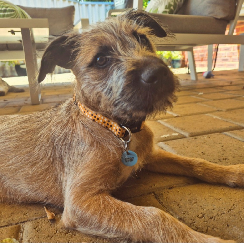 Say hey to Morag. Morag, we hear you say?! Well Morag means great, which is an accurate summary for this playful pup, who's ready for a family to love! This scruffy princess loves to romp in the garden and play. After a day of play, she settles well at night and loves a cuddle. Morag is getting used to the big wide world but has already proved she'd make a good travel buddy as she snoozed in her carrier from Carnarvon to Perth. Morag will need continued safe and slow introductions to new things, people and animals to build her confidence and mould her into a well-adjusted dog. She's cat and dog social, slowly getting used to adult dogs, and would be a great family member if given gentle introductions to older dog-savvy kids.