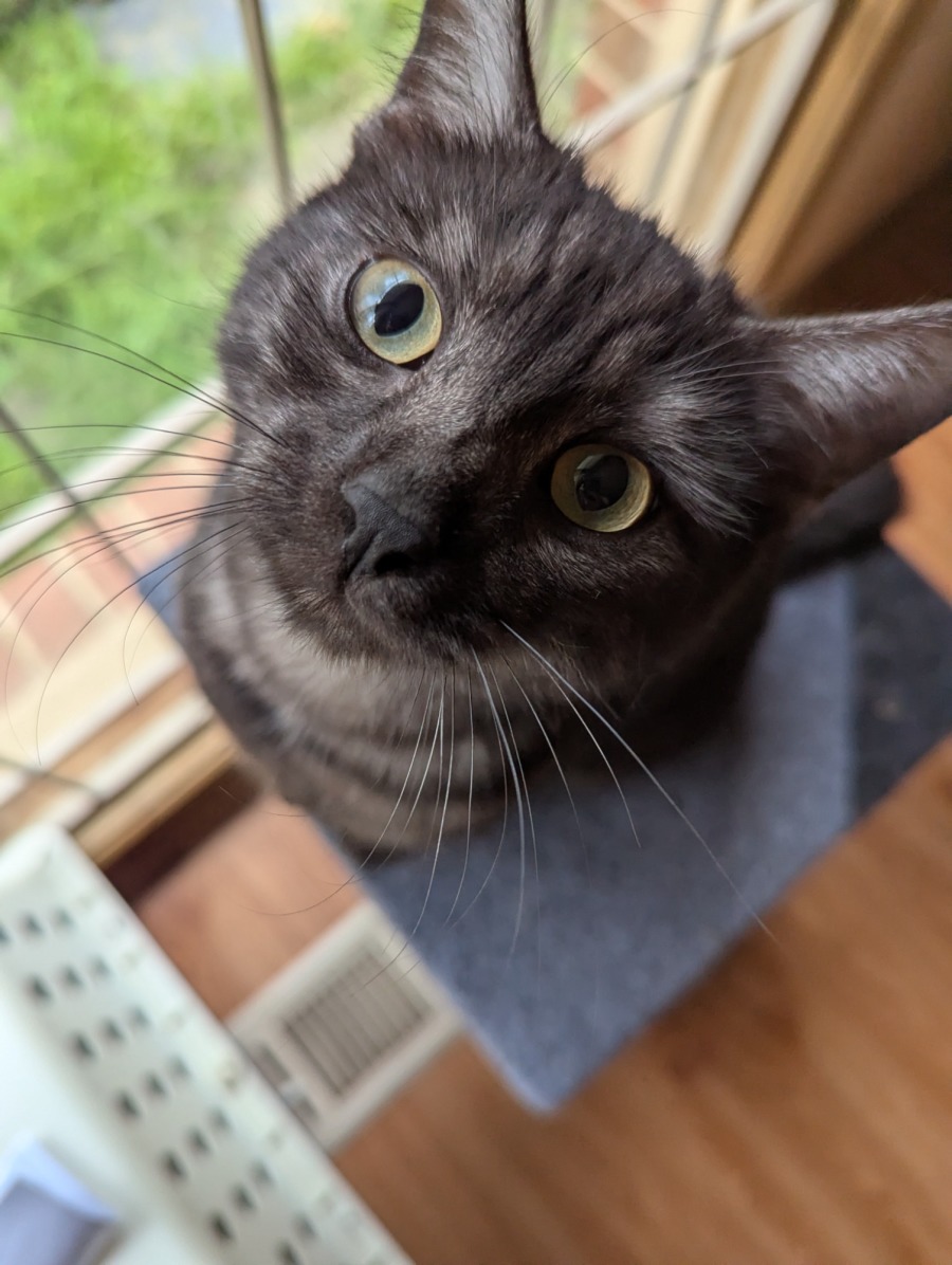 Meet Wisteria, a breathtaking smoke black beauty with a coat as soft as velvet and eyes that sparkle with personality. This elegant lady is not just a pretty face—she’s a heart full of love wrapped in fur, ready to become the shining star of your home. Wisteria thrives on human affection and craves the kind of soulful connection that makes every day feel special. Imagine a steadfast companion who happily greets you with the sweetest chirps and lively chatter, a little conversationalist who will endlessly entertain and keep you company from morning until night.