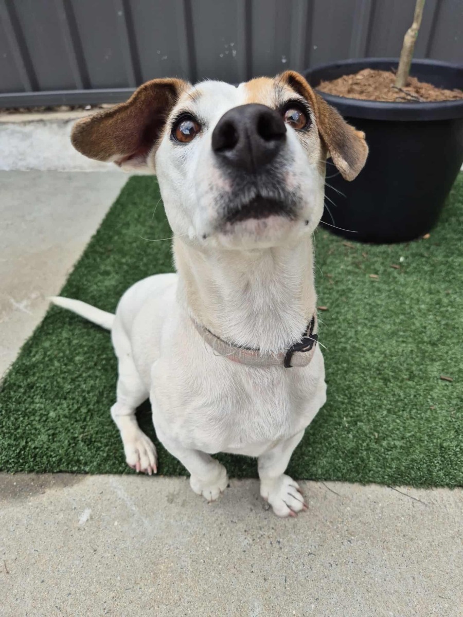 This gorgeous 9-year-old Jack Russell x Beagle girl is the perfect mix of gentle, well-mannered, and adventurous. Don’t let her age fool you—she’s still active, loves to explore, and will happily join you on new adventures.