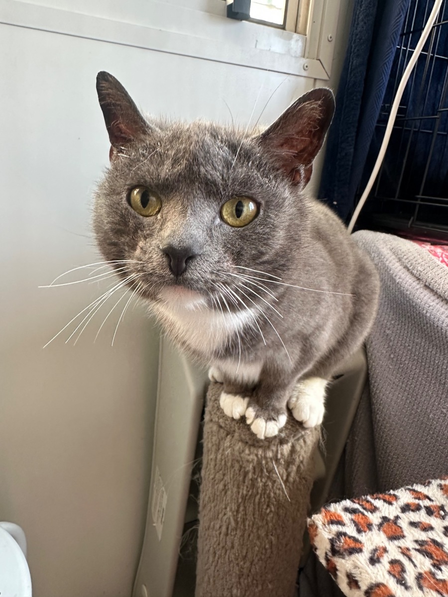 Spanakopita is a lovely 4 yo female cat surrendered to a local pound .
