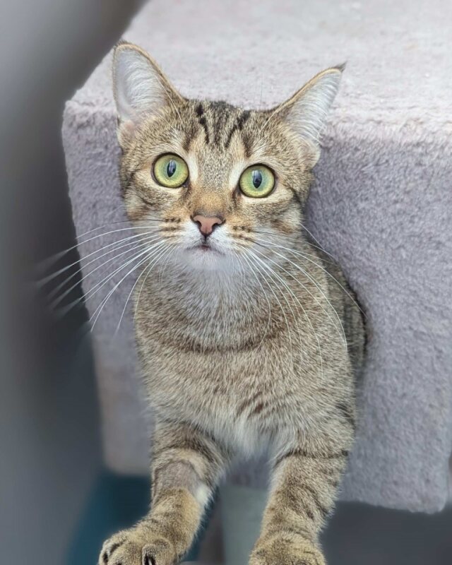 Hi, my name is Mama. I’m a 1-year-old tabby girl with soft stripes and a quiet heart. I’m still young, but I’ve already learned that the world can be a little overwhelming sometimes—so I take things slow.
