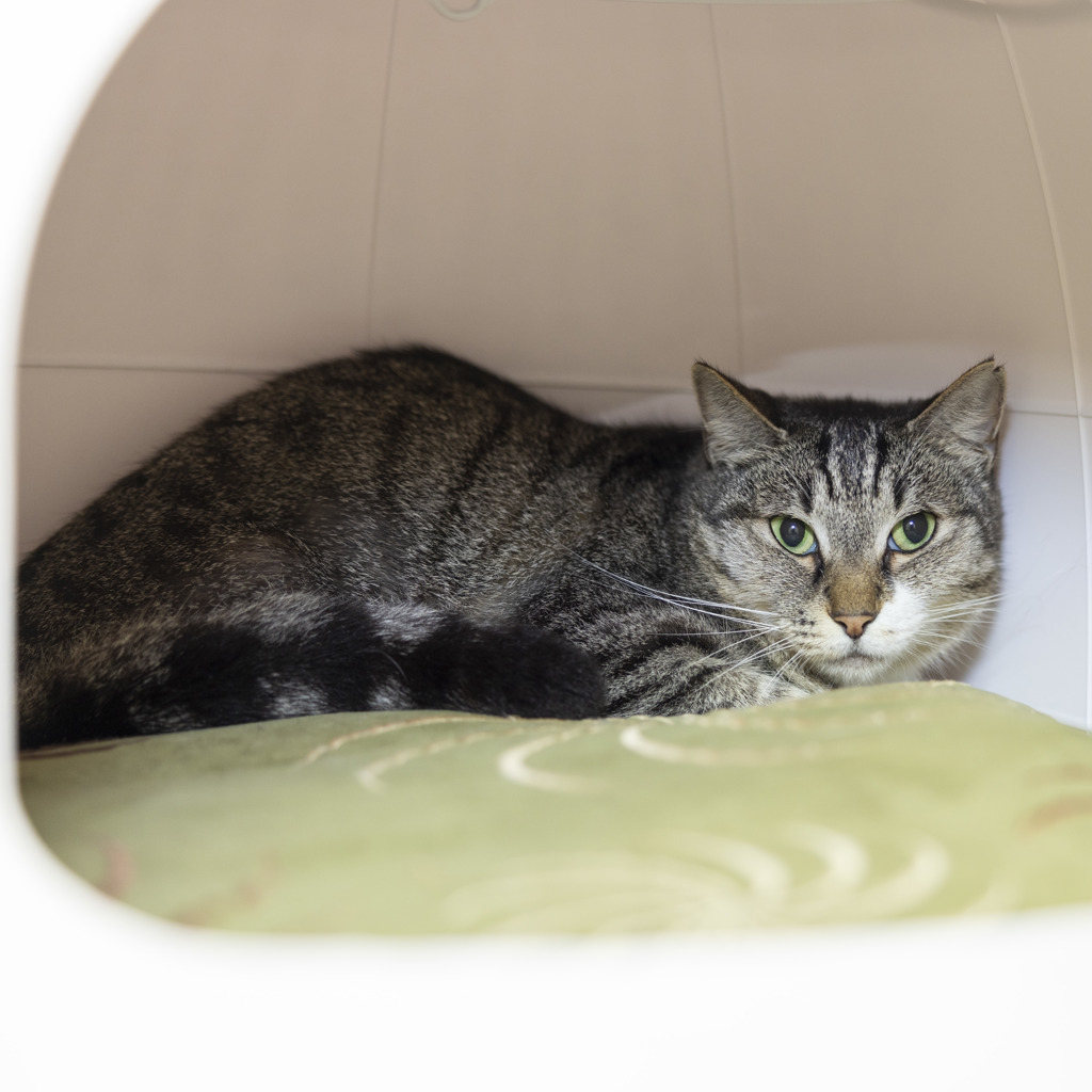 She's the kind of cat who enjoys doing her own thing - lounging in her favorite spot, watching the world go by, and taking life at her own peaceful pace. But when the moment feels right, she'll come find you, asking softly for a few gentle pats and a bit of company.