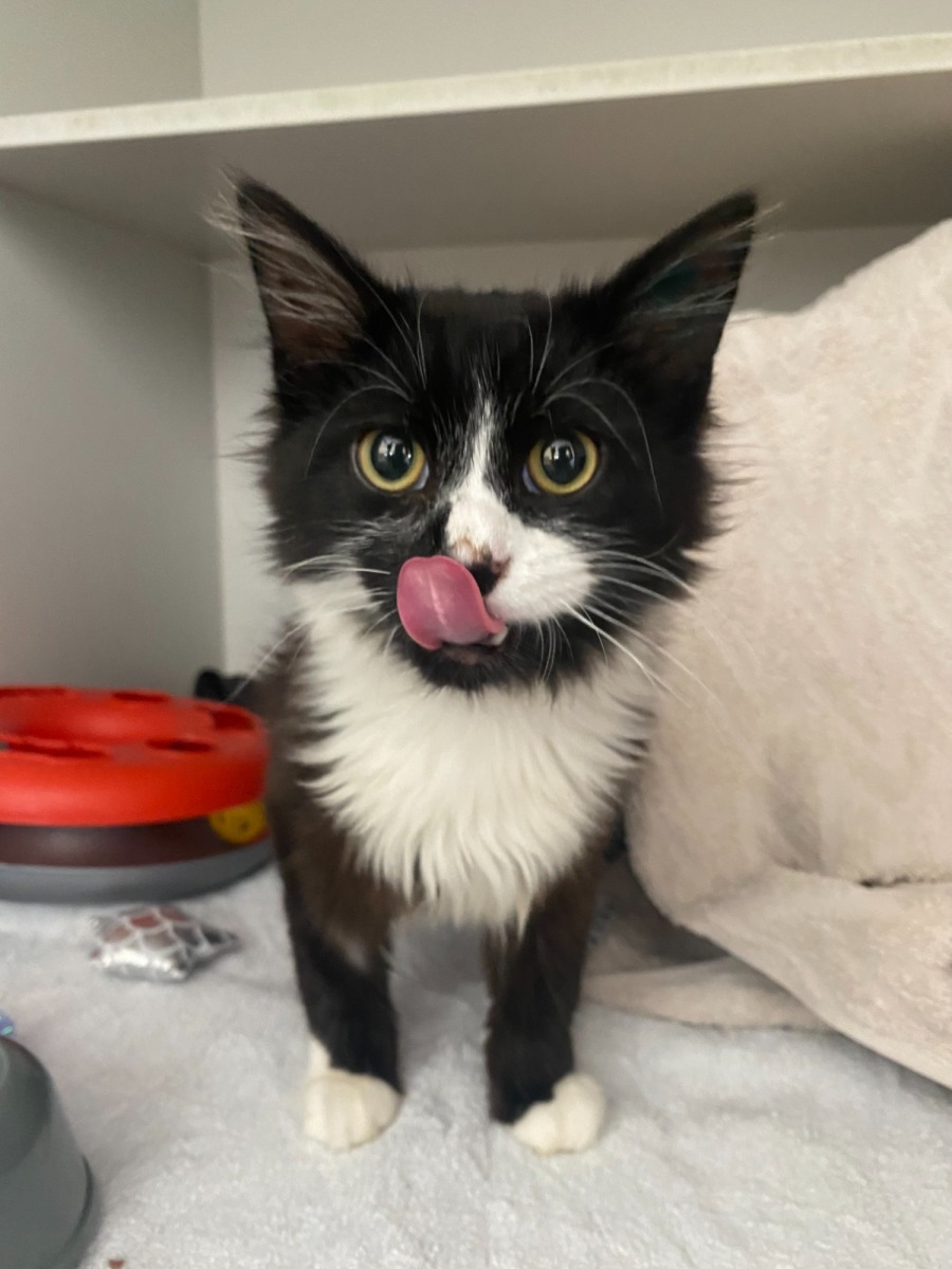 This fluffy black-and-white heartthrob is ready to steal your couch and your heart. Sloan is a certified cuddle professional who lives for pats, belly rubs, and turning on his big, happy purr.