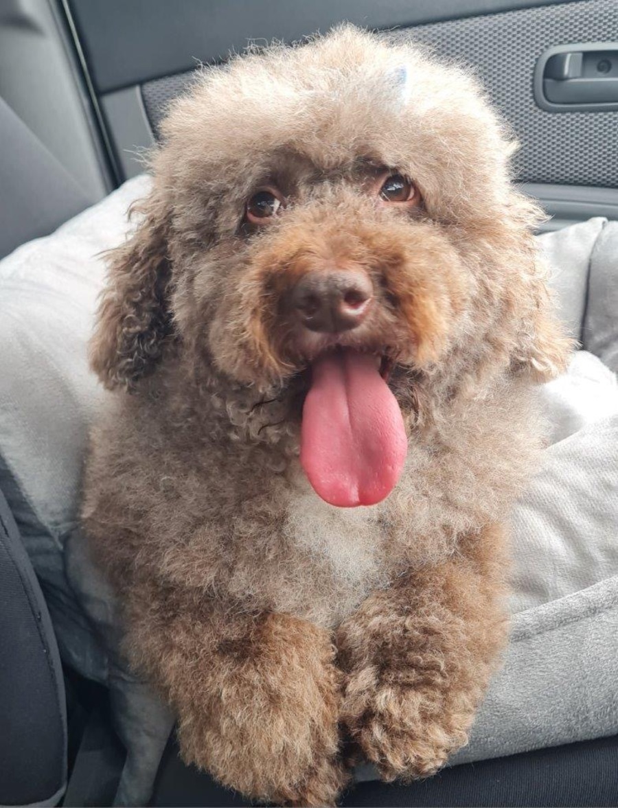 I'm a 6-year-old chocolate poodle with soft, curly fur and warm brown eyes that tell a story — though sometimes they hide beneath my coat until I feel safe enough to show them off. I've had some experiences in life that made me a little wary of people at first. I'm a little frightened of strangers, and I might keep my distance when we first meet. Life hasn't always been kind, and it's left me a little unsure of the world.