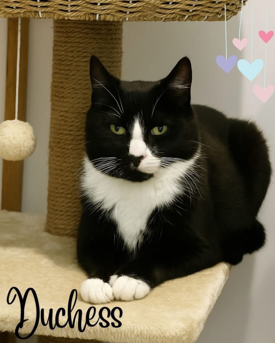 expressive eyes, reminiscent of a feline supermodel. Since being found under a house two months ago, Duchess has blossomed beautifully in her foster home and is now ready to charm her way into a new family. Forget the life of living in the shadows—this lovely lady is on the lookout for a cozy home to call her own, where she can reign supreme in comfort and style.