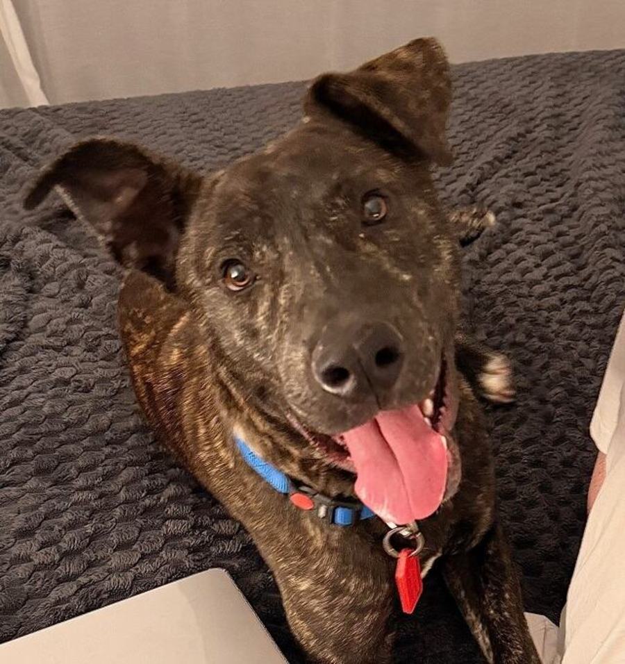 He is a young stunning brindle coated staffy mix boy. 🐾