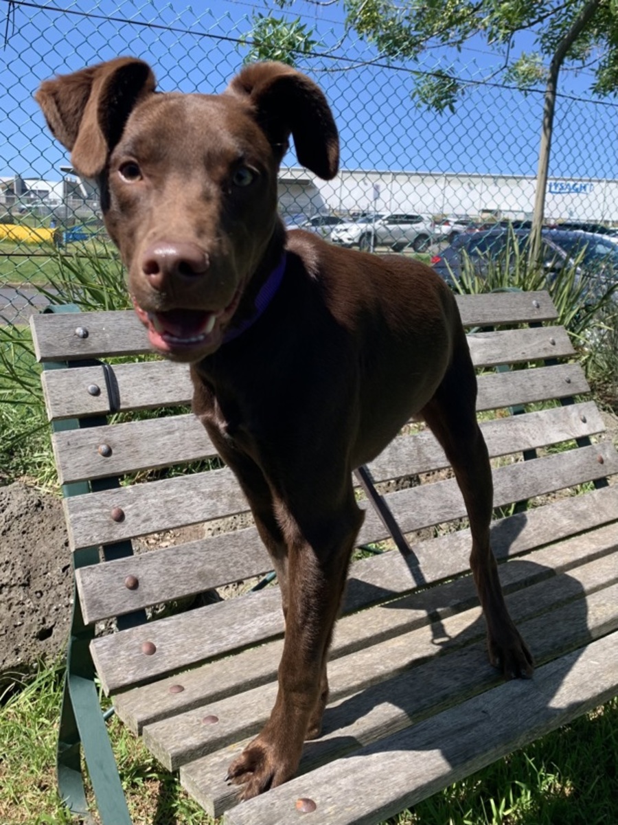 Freddie the super cute, choccy kelpie pup has found himself at GAWS and is now ready for his next journey. Freddie and his sister where part of an unwanted litter who resided together for a little too long, and initially showed some confidence issues. It is great to announce that since being part of new social dog circles, meeting many new people and residing in a separate space, Freddie has flourished. Freddie will still need all aspects of training, homelife assimilation, lead walking skills and general confidence building. He would do great with a more mature, calm dog to lead the way and has passed his cat test. Children may be a positive experience for Freddie as long as they are calm and respectful, but he has no known background of exposure. Freddie is a highly active breed mix and will needs plenty of energy expenditure and enrichment.