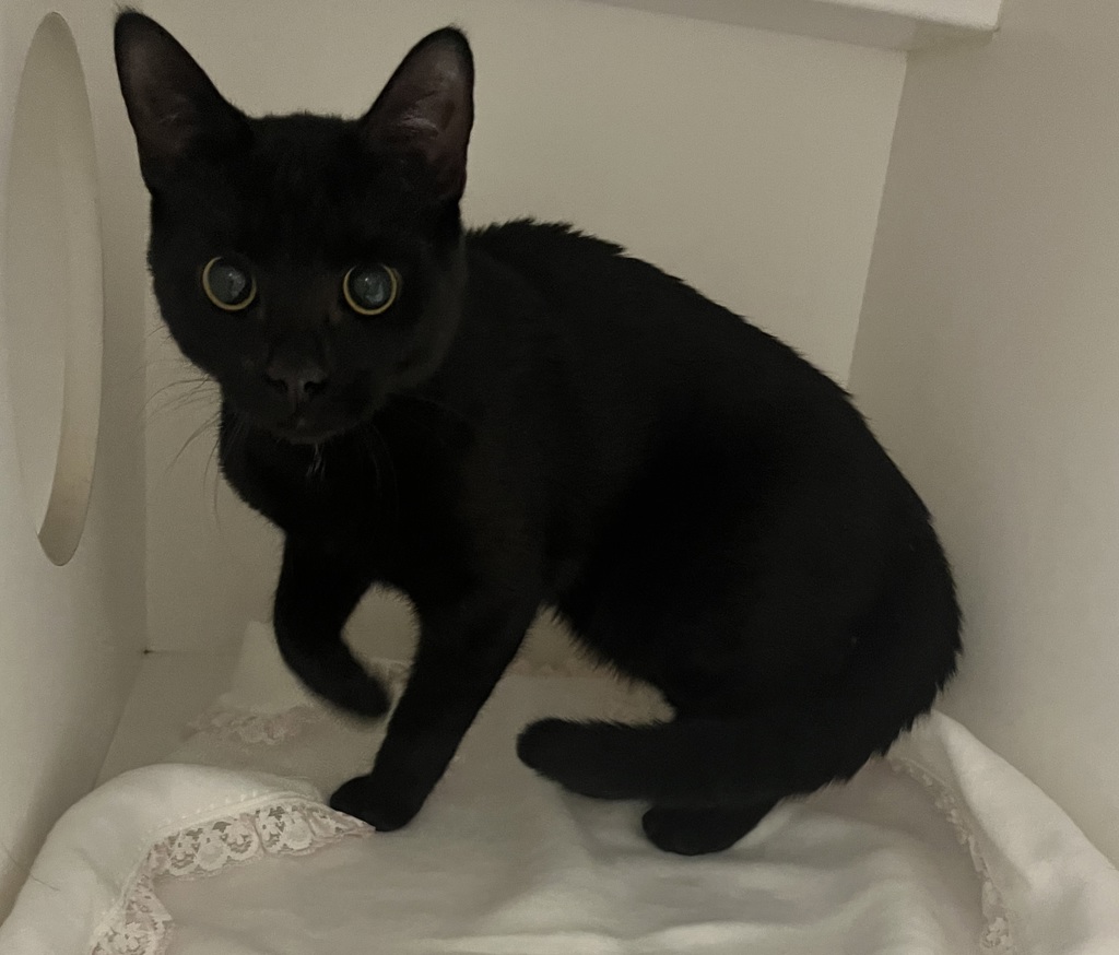 Introducing Bagheera, a sleek and curious little explorer with a big personality and an even bigger appetite! This friendly kitten is always on the move, whether he's investigating every nook and cranny, following you around to see what you're up to, or zooming after toys with wide-eyed excitement.