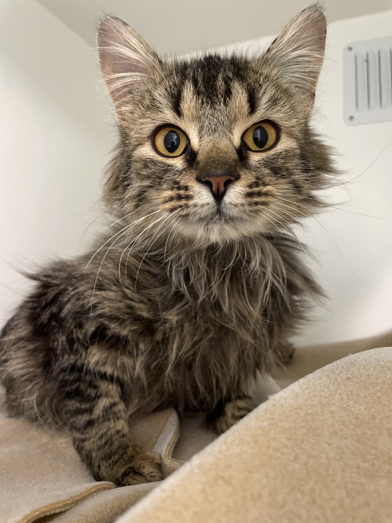 She is a shy and sensitive young girl who's still learning about the world. With a little time, patience, and tender loving care, she'll begin to show you her sweet nature and soft charm. She will thrive as an indoor cat in a calm, cat savvy teen/adult home where she can go at her own pace and feel safe. Daphne may also enjoy the company of another calm cat, given slow and thoughtful introductions. With her gorgeous long hair, Daphne will need regular grooming to keep her looking and feeling her best! Being a young cat, she'll also adore lots of enrichment to keep her curious mind and playful spirit happy. Think climbing cat trees, chasing pom-pom toys, puzzle feeders, or curling up in cozy hideaways when she needs a little quiet time.