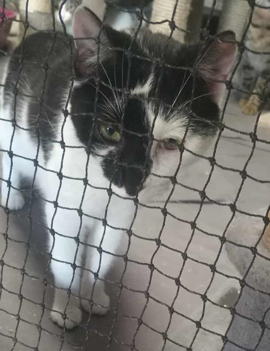 Hello! I'm Patches, a stunning white cat with black patches (hence my name) and if you keep scrolling you'll find my best friend Joelene, the beautiful grey shorthair, We are a package deal and must be adopted together—we need each other to feel safe!