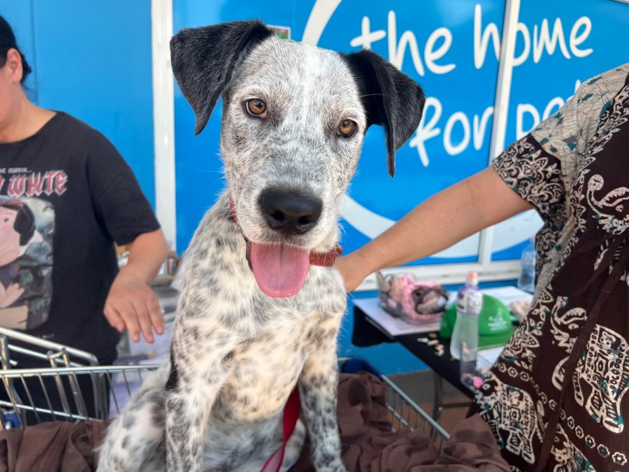 Meet Muffin, a cheerful and spirited 6-month-old Blue Heeler and Wolfhound mix. Full of jolly energy, this handsome boy was named after the cheeky Bluey character, and he embodies all the playful excitement of his namesake. He's now eagerly searching for a family to call his own, where his exuberant spirit can truly shine.
