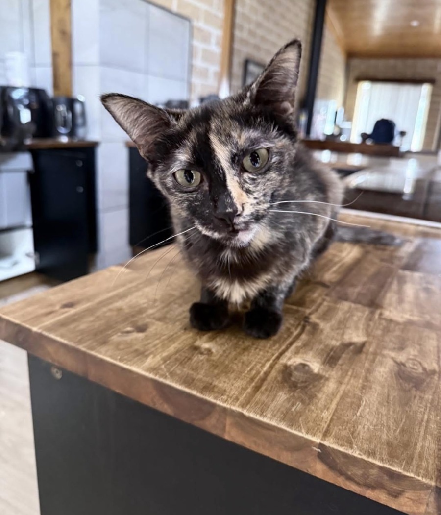 With her short-haired, beautifully patterned tortie coat and graceful, elegant manner, Eliza is the perfect blend of calm confidence and affectionate charm. She’s gentle, loving, and loves a sunny spot for a nap, but she also adores ear scratches with you on the couch, lap cuddles on and next to you, and quiet companionship once she feels at home.